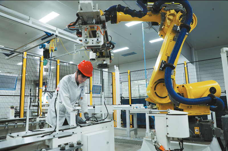 本报讯(通讯员 林远帆 俞晓芬 文/图)近日,笔者在龙净蜂巢矿山重卡动力电池模组PACK生产线项目车间内看到,工人正在熟练地操作机械臂,生产线已进入稳步试产阶段。