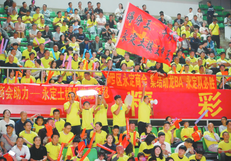 图为观众正在挥舞旗帜为球员加油 。龙媒体记者 章宸睿 摄
