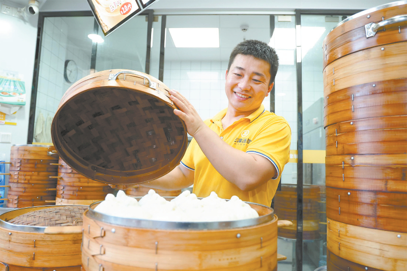 中心城区一家早餐店内,一屉屉包子新鲜出笼。龙媒体记者 谢泽铧 摄