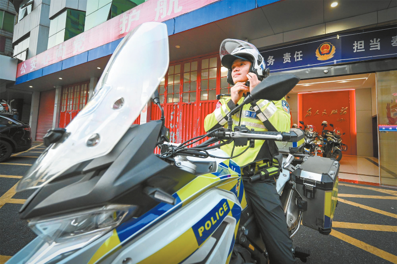 在龙岩公安交警铁骑队值班室里,江志桦已经守了一夜的班。他神情专注,翻看着之前的出警信息,指关节无意识地轻叩桌面。突然,电话铃声响起,打破了这份宁静,他立刻拿起听筒,边听边在本子上快速记录着关键信息。警情就是命令,江志桦迅速穿戴好装备,深吸一口气后跨上摩托,驶向晨雾尚未散尽的街头。