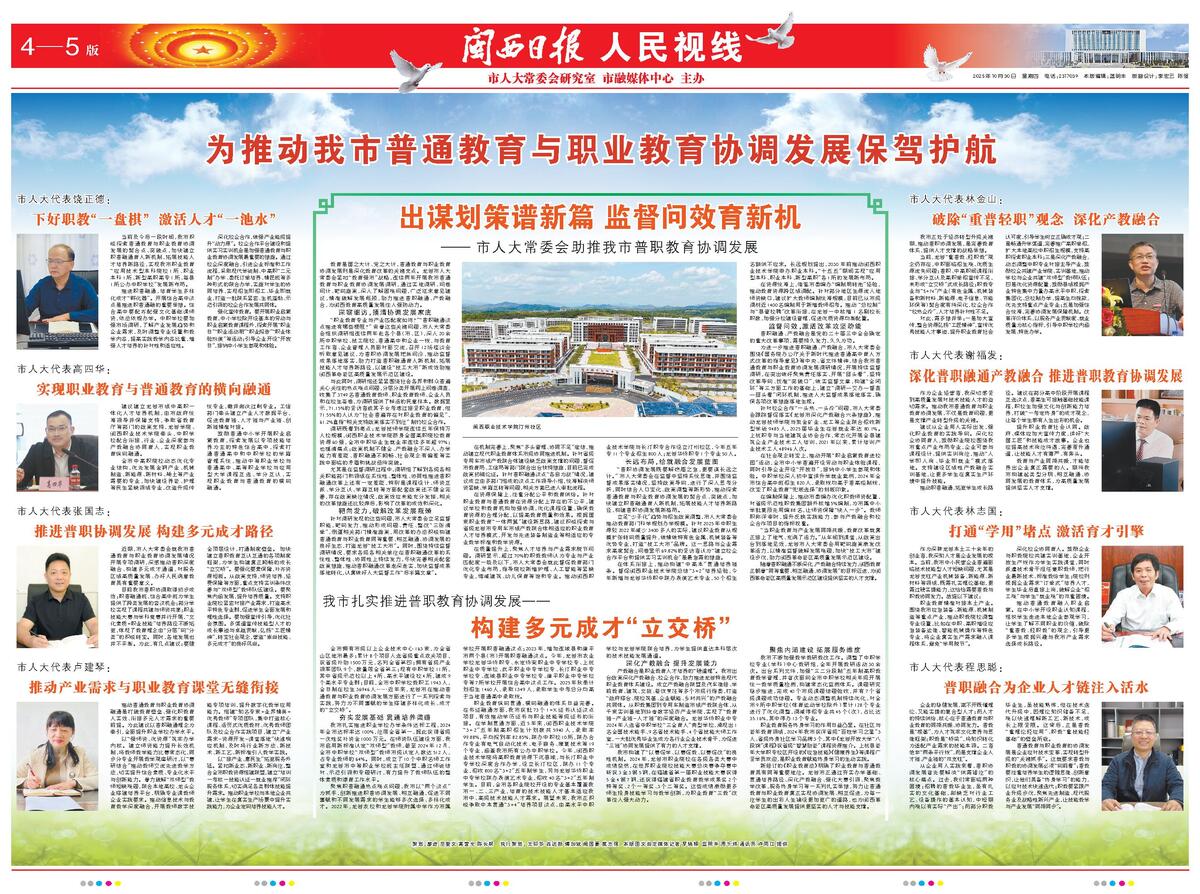 随着普职融通不断深化、产教融合持续发力,闽西教育正朝着“同等重要、相互融通、协调发展”的目标迈进,为闽西革命老区高质量发展示范区建设提供坚实的人才支撑。