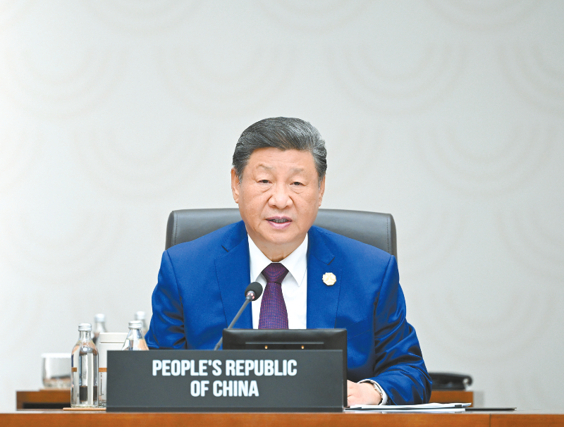 当地时间十一月一日上午,国家主席习近平在韩国庆州出席亚太经合组织第三十二次领导人非正式会议第二阶段会议,并发 表题为《共同开创可持续的美好明天》的重要讲话。 新华社记者 谢环驰 摄