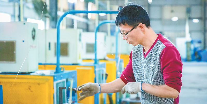 近日,位于上杭县的福建晶辉新材料科技有限公司车间里机器轰鸣,一派火热生产赶订单的场景。该公司是一家生产5G传输信号导体、超细铜线、合金铜等超细导体的高科技企业,产品主要应用在电子信息领域数据传输线、医疗领域设备用线及机械产品超细线等。结合当前市场变化和当下的订单生产情况,该公司计划新增一部分设备,投用后预计产能将再提升20%。