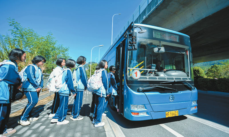 “坐定制公交上下学,安全又省心!”九年级的詹同学感慨道。过去,她需骑自行车上下学,如今刷脸乘车,舒适又便捷。