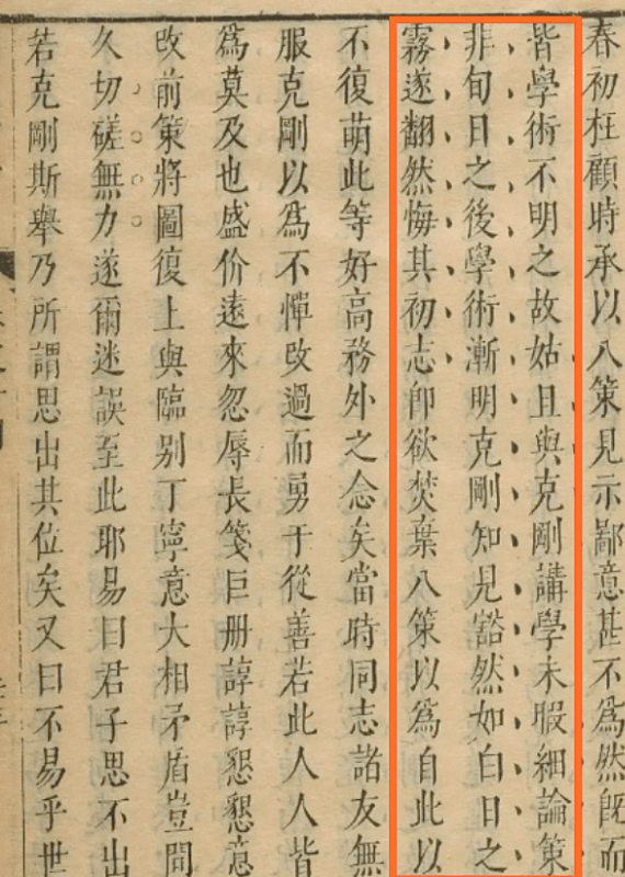 前文提到,童世坚曾以《八策》请教王阳明,王阳明认为童世坚学术尚浅,需对“良知”加以领悟。童世坚“知见豁然,幡然悔其初志,欲焚弃《八策》,誓不再萌好高务外之念”,当时同门弟子以童世坚勇于改过的精神为之叹服。但是别后数月,童世坚又想删改《八策》后重新上奏,于是派人想取回《八策》。王阳明很生气,于是提笔回信(《复童克刚》),信中的大意是:初春你屈尊来访,当时你将八条策略给我看,我的看法却非常不以为然,到后来才知道都是因为你学术不昌明的缘故,便暂且与克刚研讨学问,没有空闲仔细讨论策略的对错。《易经》曰:君子思不出其位。像克