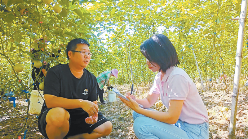 图为记者在永定区高陂镇西陂村开展“百名记者进百村”主题采访,与当地百香果种植户交谈。