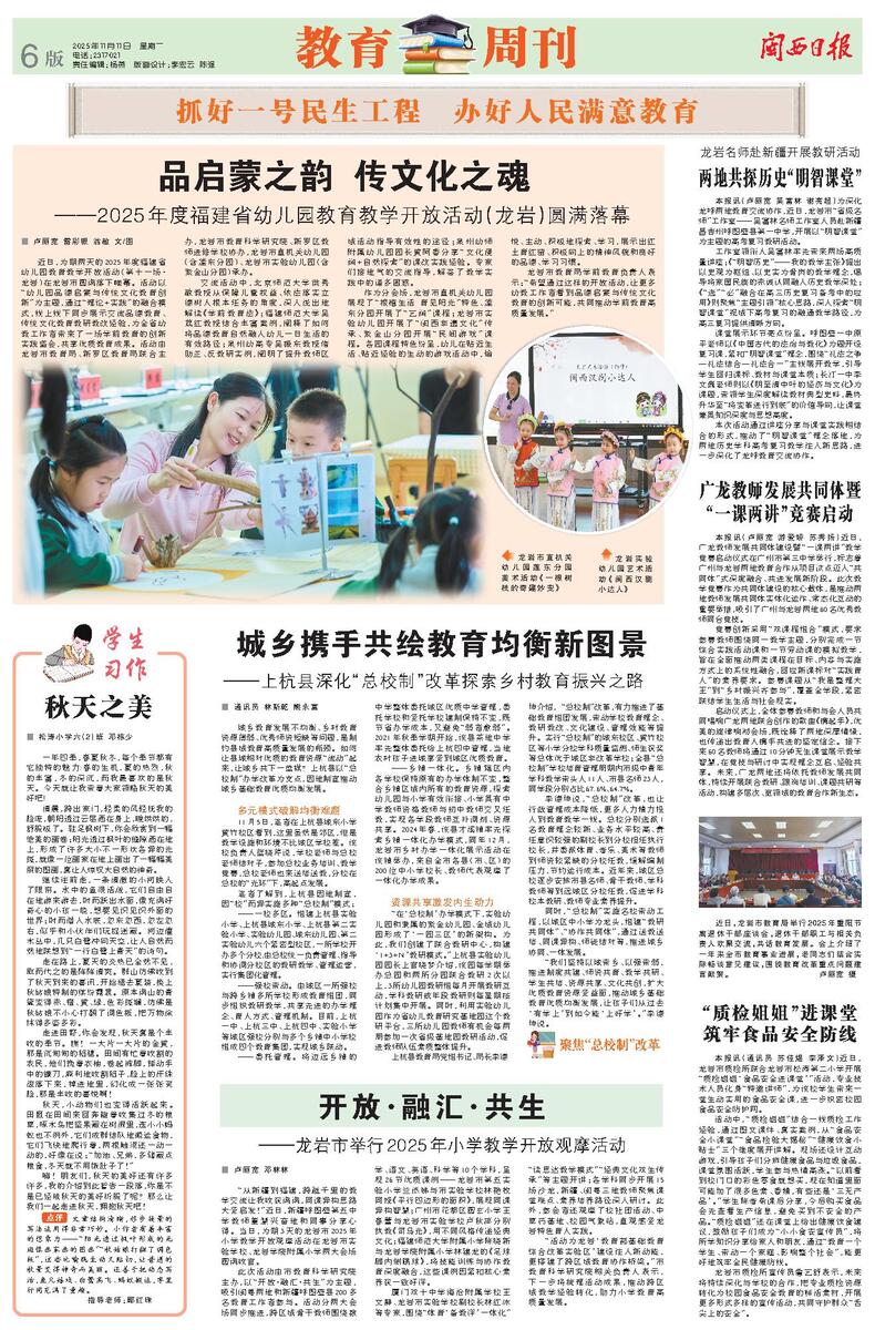“活动为龙岩‘教育部基础教育综合改革实验区’建设注入新动能,更搭建了跨区域教育协作桥梁。”市教育科学研究院相关负责人表示,下一步将梳理活动成果,推动跨区域教学经验转化,助力小学教育高质量发展。