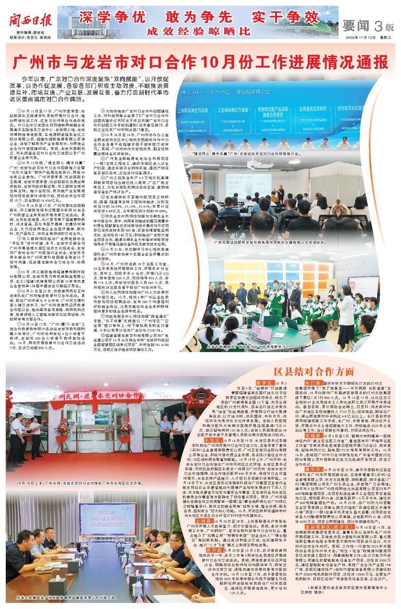 广州市与龙岩市对口合作10月份工作进展情况通报