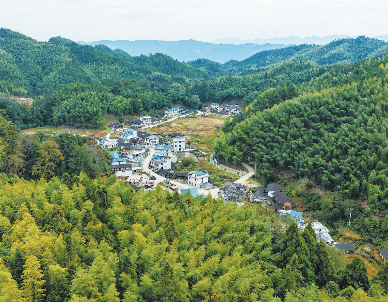 我们沿着村道漫步。水是极清的,带着山泉特有的甜润气息,潺潺湲湲,不舍昼夜。依山而建的民宅,有钢筋水泥砌筑的高楼新居,也有一些是木梁黛瓦的旧制。这些民居就那么傍着山势,疏疏落落地散着。我走近几栋颇有点年头的旧厝,只见那木色是经了风雨的深褐色,沉郁而温厚;瓦片上是茸茸的青苔,像岁月绣上去的暗花。整个村子,便被四周迤逦的青山与无边的翠竹紧紧地拥在怀里。