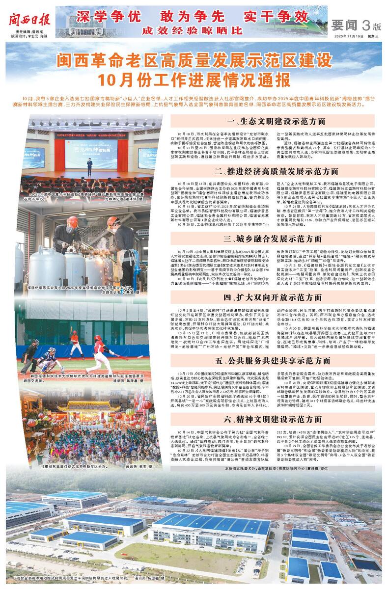 闽西革命老区高质量发展示范区建设10月份工作进展情况通报