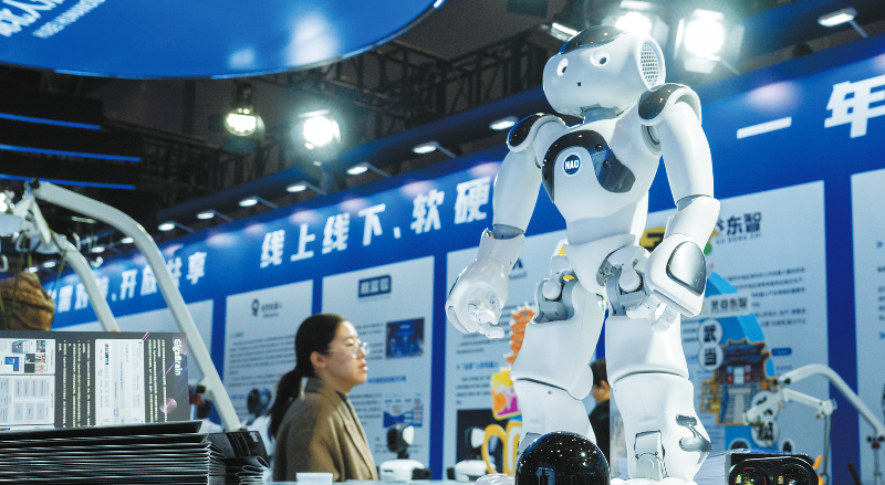11月21日,参观者在2025中国5G+工业互联网大会展厅参观人形机器人。11月21日至23日,以“万物互联 智能领航”为主题的2025中国5G+工业互联网大会在湖北武汉举办。