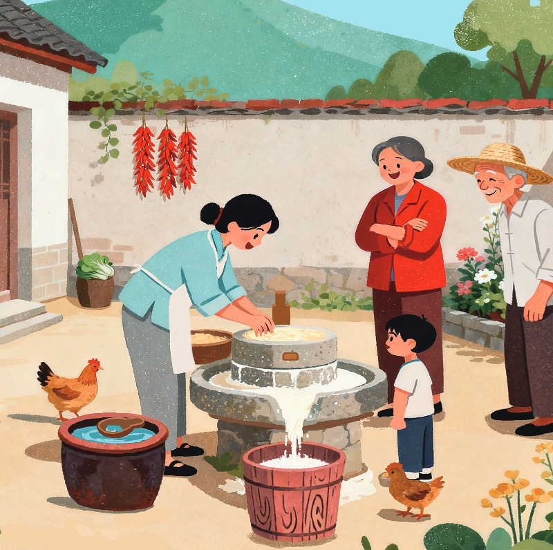 我家多年来的生活习惯,由母亲勤劳的双手操执着胆水豆腐、灰碱凉粉、滴水汤圆,让人沉浸在幸福的念想中。与此同时,左邻右舍也经常有人来我们家小院里借用那盘水磨,做自己喜欢吃的凉粉、豆腐,时不时还要舀我们家水缸里的清水......