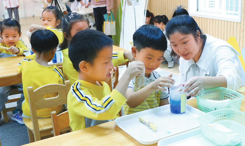 近日,新罗区幼儿园教育教学开放观摩活动在龙岩市第一幼儿园举行,来自新罗区各级各类幼儿园80余名教师参加。龙岩市第一幼儿园聚焦“生活化科探活动”,分别开展了中班科学活动《不让乒乓球掉下来》、大班科学活动《小小浮力秤》等。通讯员 邱霞姿 摄