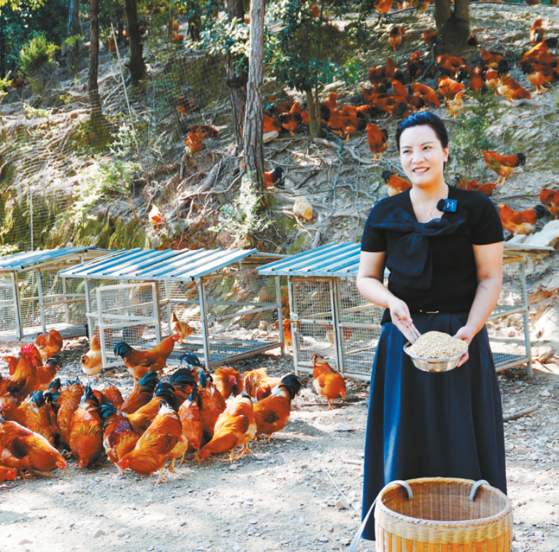 图为农场主在饲养河田鸡。