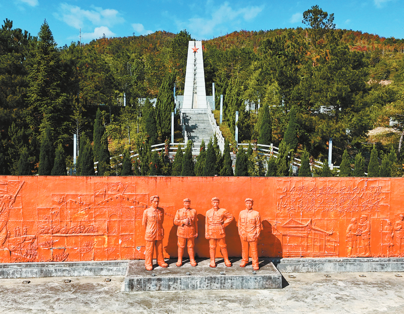 长岭寨战斗被称为“红军入闽第一仗”。1929年2月下旬,中国工农红军第四军主力在军长朱德、党代表毛泽东指挥下,由江西省吉安县东固向赣闽两省边界地区游击,3月12日进到福建省长汀城南的四都。3月14日红四军攻克长岭寨,全歼守军2个团,击毙旅长郭凤鸣,并乘胜解放长汀城。长岭寨战斗旧址位于长汀县策武镇河梁村梁屋头,目前遗址上建设有长岭寨战斗纪念园,包括长岭寨战斗纪念碑,毛泽东、朱德、周恩来、陈毅雕塑以及浮雕背景墙等设施。长岭寨战斗纪念碑碑高7.9米,三角刺刀形,碑上刻文“长岭寨战斗纪念碑”。浮雕背景墙以红军入闽第一仗历史为内容,展现当年战争的情景和艰苦生活,教育广大游客特别是青少年牢记红军的曲折历史及中国共产党取得革命成功的历史必然性。陈炳林 摄