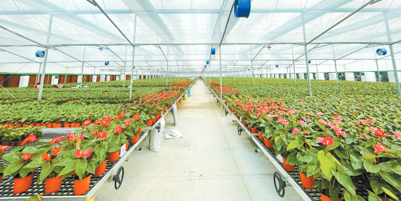 “花场可以吸纳超过30名村民长期就业,其中不少是原矿山职工转型的技术工人;通过‘花场+农户’合作模式,带动周边村民试种红掌,增加收入。”龙潭乡村振兴服务中心主任赖其筠介绍。