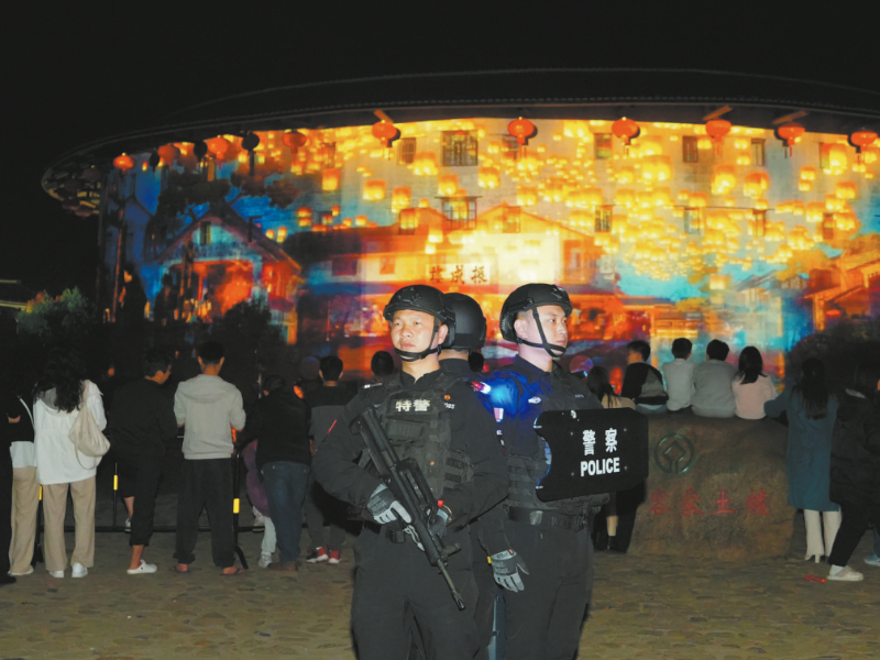在龙岩的大街小巷,警察守护的身影随处可见,一幕幕巡防与守护的画面不断上演——长汀公安在古城、店头街、三元阁等核心景区设 24 小时警务岗亭,采取“步巡+ 车巡+无人机巡”模式精准调度警力;漳平市永福镇台湾街,民警联合商户、志愿者组建“平安守夜人”联勤联防队伍,开展“邻里式守护”;永定公安在湖坑土楼等景区,推行“移动警务站+快反小组”工作模式,将安全服务延伸到游客身边,实现警情现场快速处置与矛盾纠纷一线化解,保障夜间文旅活动有序开展。
