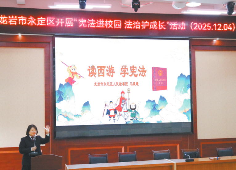12月4日,龙岩市永定区人民检察院干警走进区胡文虎实验小学开展宪法宣传活动。检察官通过解锁“西游记法治密码”引导同学们趣味学宪法,认清宪法与自身生活的紧密联系,树立正确的是非观与法治观,学会运用法律武器维护自身各项合法权利。 通讯员 朱政秋 摄