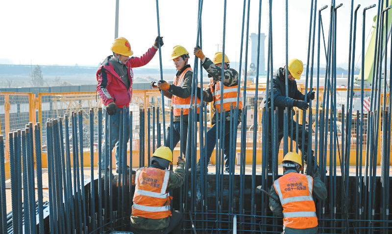 12月23日,中铁十一局工人在石雄铁路跨津石高速连续梁拱主墩建设现场架设钢筋。时下,在位于河北省保定市的石雄铁路2标段建设现场,中铁十一局集团数百名建设者奋战一线,确保工程按照施工节点有序推进。石雄铁路设计时速350公里,新建线路约156公里,建成通车后对完善京石通道现代化综合交通运输体系布局,助力雄安新区建设具有重要意义。 新华社记者 牟宇 摄