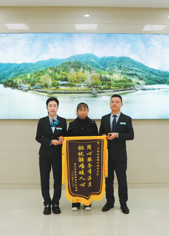 “太感谢了!这笔钱能顺利取出来,真是帮我解决了大麻烦!”12月9日,客户张女士将一面锦旗送到农行龙岩漳平支行,锦旗上写着:“用心服务有温度,排忧解难暖人心。”张女士言语中满是感激。这温情的一幕,正是农行基层网点主动作为、贴心服务的生动写照。