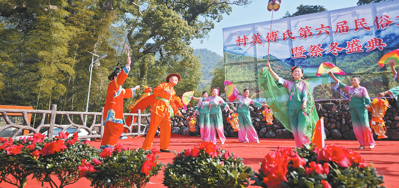 12月21日是农历冬至,新罗区江山镇村美村村民们来到傅氏聚星堂文化广场,参加村美傅氏第六届民俗文化节,欣赏精彩的民间文艺演出,品尝当地美食,传承傅氏家风,共享美丽乡村建设成果。图为国家级非遗龙岩采茶灯表演情景。龙媒体记者 赖珊盛 通讯员 傅奎星 摄