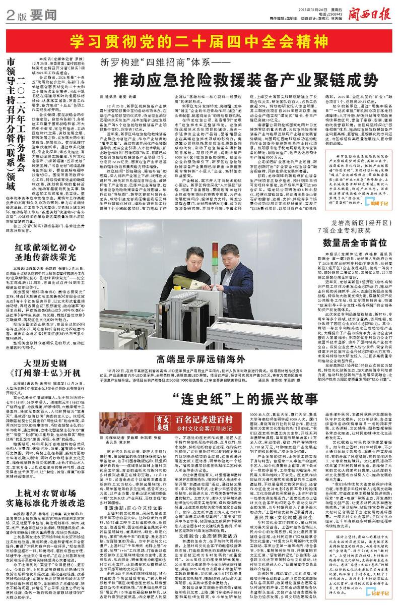 历史悠久的作坊里,老匠人手持竹帘轻荡,薄如蝉翼的纸浆膜缓缓成型;研学基地中,孩子们围着雕版拓印,眼里闪着好奇的光......连城县姑田镇上堡村文化会客厅里,古老的造纸术与新时代的乡村振兴故事正在精彩交融。12月18至19日,记者走进这个以省级非遗连史纸制作工艺为核心,串联起展陈馆、作坊、研学基地等的多元空间,感受用文化为笔、以产业为墨,在青山绿水间勾勒出一幅“文脉永续、产业兴旺、百姓幸福”的乡村新画卷。