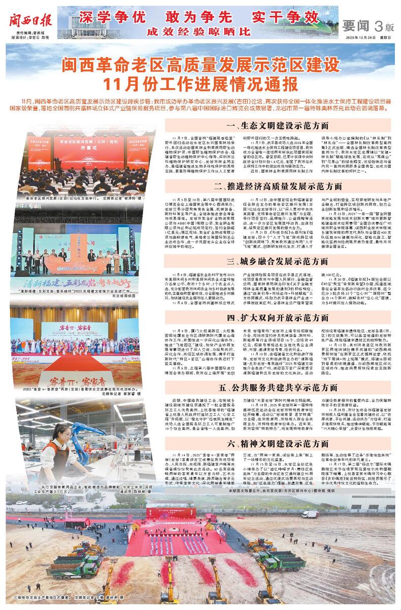 闽西革命老区高质量发展示范区建设11月份工作进展情况通报