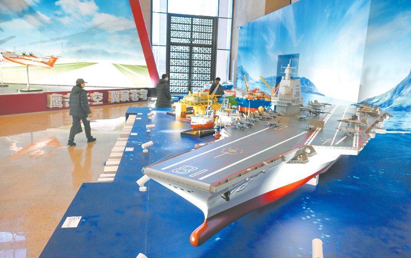 这是在“筑基强国路——中国制造‘十四五’成就展”上展出的福建舰模型。12月29日,“筑基强国路——中国制造‘十四五’成就展”在位于北京的中国国家博物馆开幕。展览通过高端制造、产业基础、智能制造、绿色制造、融合发展、美好生活等六部分、300余件(套)展品,全景呈现“十四五”期间中国制造蓬勃发展的历程,为公众直观呈现中国制造的硬核实力与民生温度。新华社记者 金良快 摄