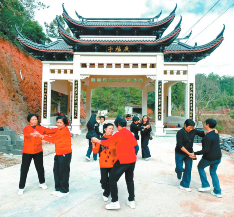 近日,长汀县童坊镇部分群众来到了新建的广福亭,在广福亭前欢快地跳起了交谊舞。据了解,该亭为当地群众和爱心人士募集善款60多万元兴建,古色古香的亭子,给著名的平原山增添了一道亮丽风景。通讯员 黎寿钦 摄