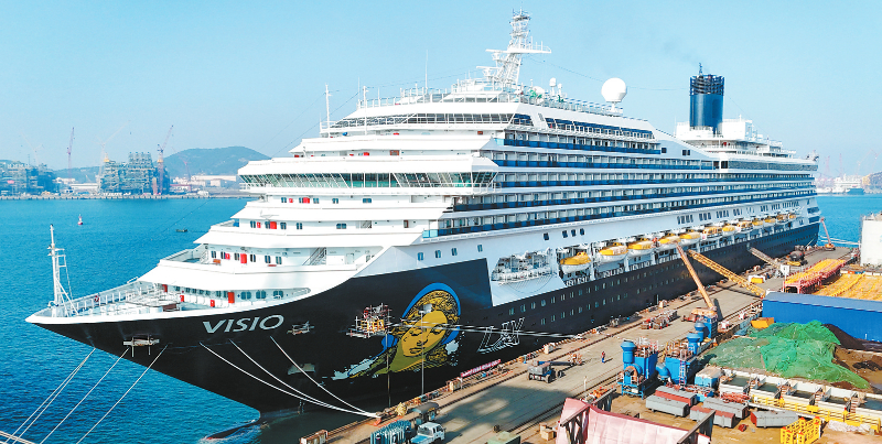 1月7日,“理想”号大型邮轮在中国船舶集团青岛北海造船有限公司厂区内进行维修(无人机照片)。目前,“理想”号邮轮在中国船舶集团青岛北海造船有限公司厂区有序开展维修。“理想”号邮轮是来自意大利芬坎蒂尼船厂的10.3万总吨邮轮,自2025年12月24日进场开展常规修理。这是继“梦想”号之后该公司承接的第二艘大型邮轮修理项目,标志着青岛邮轮产业服务能级跃上新台阶。 新华社发 张进刚 摄