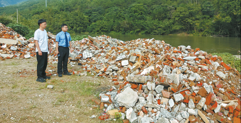 查看并取证某河道非法堆积建筑垃圾现场