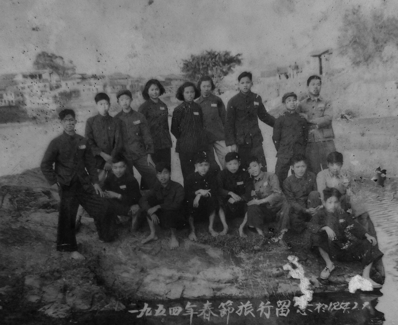 这次毕业游,同学们全程徒步前往,从龙岩城郊西山启程,往红坊船巷,经龙门赤水到小池,至江山铜砵,再经铁山蒋武直至铁石洋,每到一地该地同学即入伴,回到城里,历时7天。其间,在所在地同学的家小住,各家长辈以春节佳肴热情款待,顺路观光名胜古迹。一路边走边聊课余开挖学校大操场的劳动竞赛,荣获一面“劳动是最光荣的”锦旗的情景;也津津乐道同学们在全校运动会上你追我赶荣获十几面冠亚军锦旗的比赛场景;还蛮有情趣地谈论参加歌咏、舞蹈比赛,荣获“友爱奖”的欢呼雀跃气氛,班级还被命名为“红星班”。一路欢歌,一路笑语,尽情释放青春浪漫的激情,别说有多高兴啦!在走回到城里时,我们聚在龙岩八景之“龙川晓月”登高潭附近的岸边巨石上合影留念,刻下“1954年2月9日”这一时光记忆。