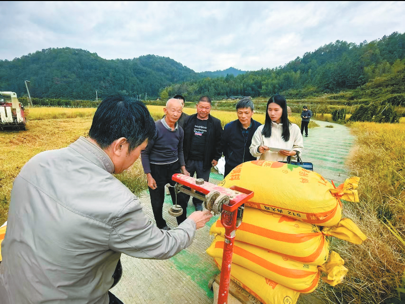 长汀县河田镇朱溪村组织开展水稻华浙优210的高效种植模式测产验收