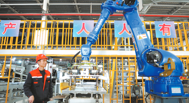 近日,在晋江(长汀)工业园区的龙岩市瑞启铝业有限责任公司的生产车间里,工人师傅正在操作机械臂进行半自动作业赶制生产铝锭产品订单。去年以来,该园区“妈妈式”服务品牌效应逐步显现,政务服务延伸至园区一线,为区域经济高质量发展注入新动能。通讯员 陈炳林 沈元兴 张敏 摄