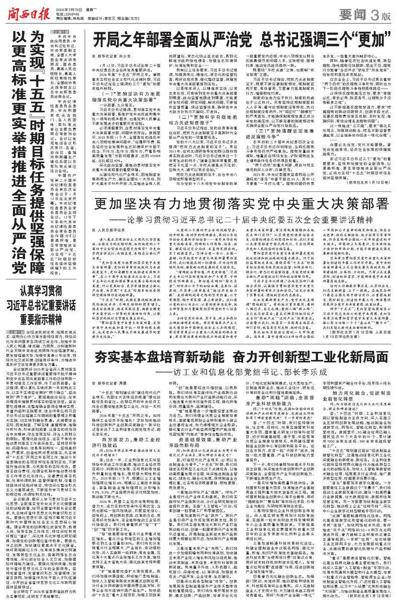 开局之年部署全面从严治党 总书记强调三个“更加”