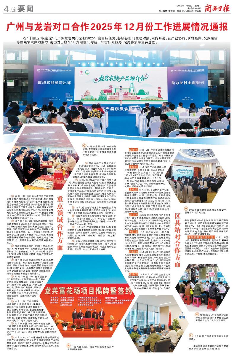 广州与龙岩对口合作2025年12月份工作进展情况通报