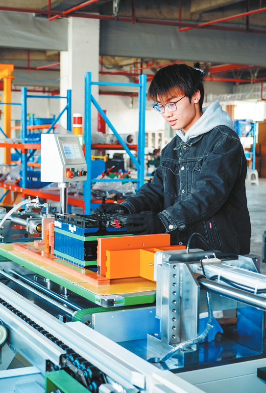图为生产车间内,工作人员正在组装电池。 龙媒体记者 章宸睿 摄