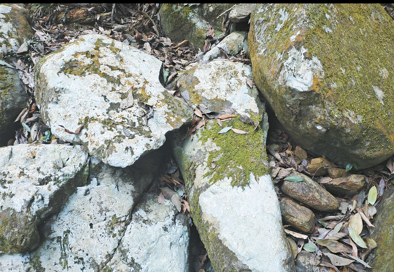 初入雪石溪,便为“雪石”之名的由来所倾心。溪涧磐石,皆被一层莹白菌斑裹覆,远望恰似落雪栖于石上,与潺潺溪水相映成趣。行至旗顶山巅,更见散落碎石泛着雪色光泽,阳光洒落时,山顶雪石与溪中菌斑遥遥相望,让人恍惚间难辨:是雪落溪涧染白了石,还是涧中石影映亮了雪?村民说,山顶碎石是远古地壳运动的馈赠,溪中菌斑是山水滋养的精灵,二者相生相伴,才造就了雪石溪独一无二的景致。