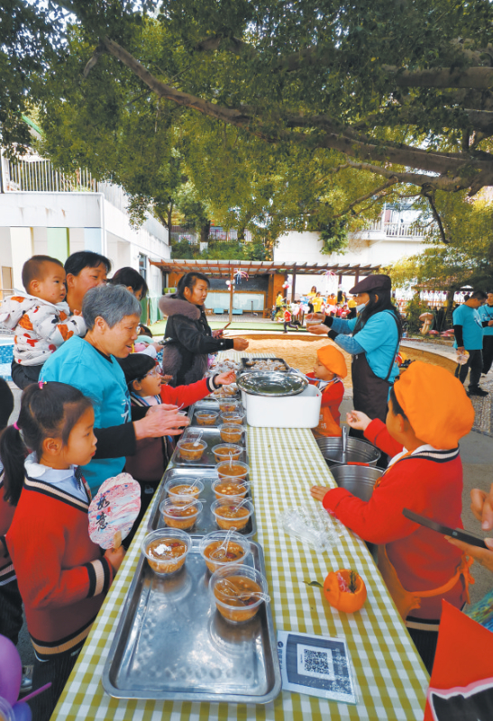 活动现场,孩子们与家长分工协作,精心熬煮软糯香甜的腊八粥,蒸制清香扑鼻的糯米糕,还发挥创意制作充满乡土气息的手工艺品。市集摊位前,孩子们化身“小掌柜”,主动热情地向来往的老师、家长推销自己参与制作的腊八粥,稚嫩的吆喝声、甜甜的笑容,让整个幼儿园洋溢着欢乐的氛围。 通讯员 许勤 摄
