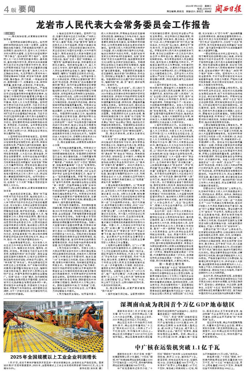龙岩市人民代表大会常务委员会工作报告