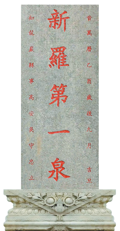 亦即“时万历乙酉岁后九月吉旦/新罗第一泉/知龙岩县事高安吴守忠立”。