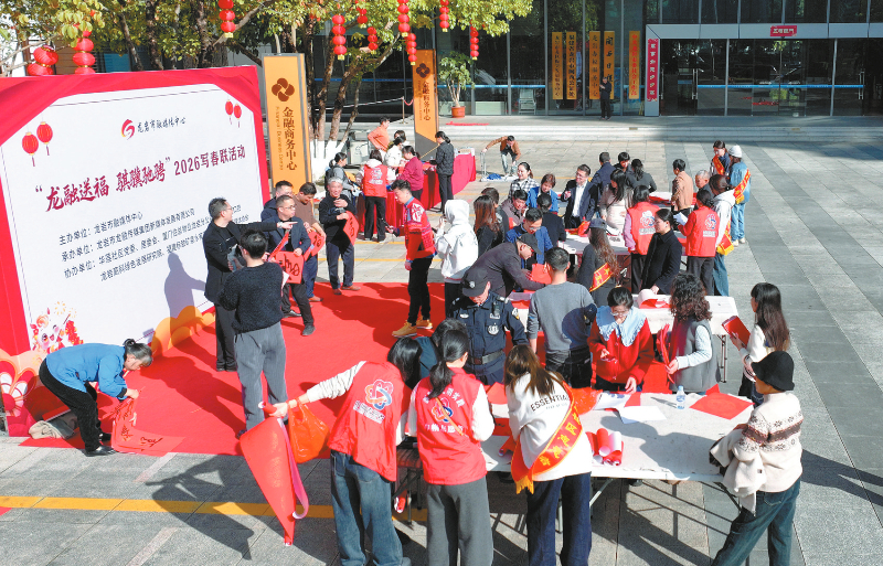 本报讯(龙媒体记者 曾俊钦 连灼森 许文星 文/图)2月5日,龙岩市融媒体中心在金融中心南门广场举办“龙融送福 骐骥驰骋”2026写春联活动。
