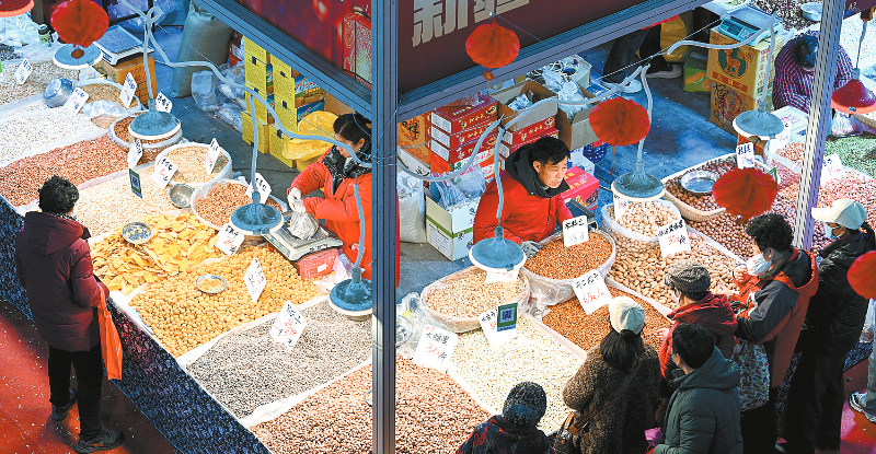 2月5日,在2026银川新春年货博览会现场,市民选购干果特产。新春将至,年味渐浓。各地举办年货大集、写福字春联等活动,人们选购鲜花、中国结等饰物,迎接新春。新华社记者 冯开华 摄