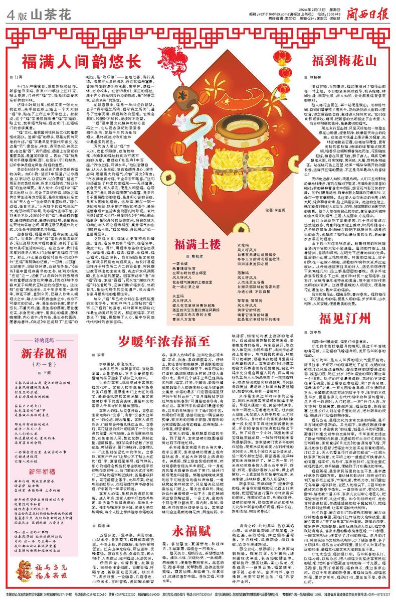 说到福文化,福建人更有特殊的情感。首先,省名中就有个福字,在省名中,独此一份。另外,用福字命名的地名也很多,如福州、福清、福鼎、福安、永福等,福山福水,福运绵长。我们闽西是客家祖地,有很多民俗也与福有关。如长汀县濯田镇升平村农历二月二的百壶宴,村民摆出数百锡壶的客家米酒,表达祈求风调雨顺、五谷丰登的愿望。因客家话中“壶”与“福”谐音,象征“百福”;而永定“湖坑作大福”则在重阳节,迎神打醮祈福求安,热闹非凡,是世代相传的文化遗产,成为海外乡亲寻根祭祖的重要纽带。