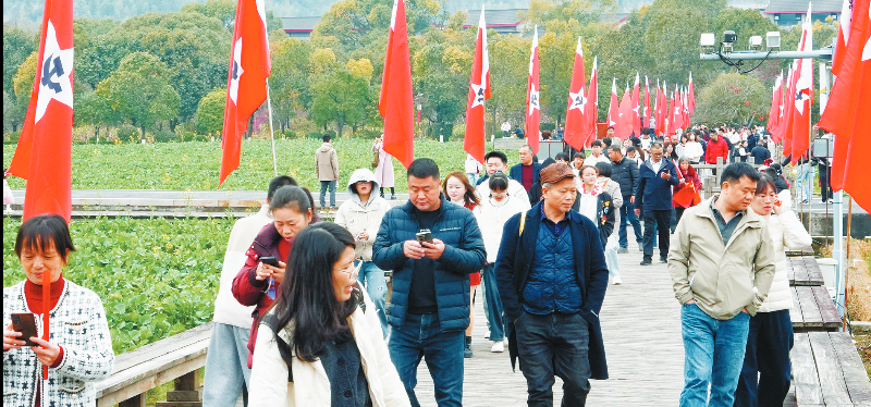 会址旁的红歌大舞台上,一首首振奋人心的经典红歌轮番唱响,不少游客被歌声吸引,情不自禁地挥动手中的国旗,融入这热闹的氛围中。歌声、掌声、欢笑声交织在一起,将新春的祝福洒满这片红色热土。