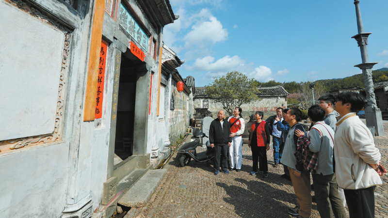 村口红梅、桃花灼灼绽放,喜迎来客;文武庙、衍庆堂前鞭炮轰鸣,辞旧迎春;千米古街上游人络绎不绝,大家徜徉在错落分布的30余幢“九厅十八井”高堂华屋间,目光流连于精美的雕梁画栋、古朴的农耕器具、红色革命遗迹,脚尖轻触着古色古香的石板路,在7万平方米保存完好的明清古建筑群中,在浓烈的年味中,细细品味“福建民居第一村”的历史韵味,感受客家耕读文化的深厚底蕴,享受惬意的慢时光。