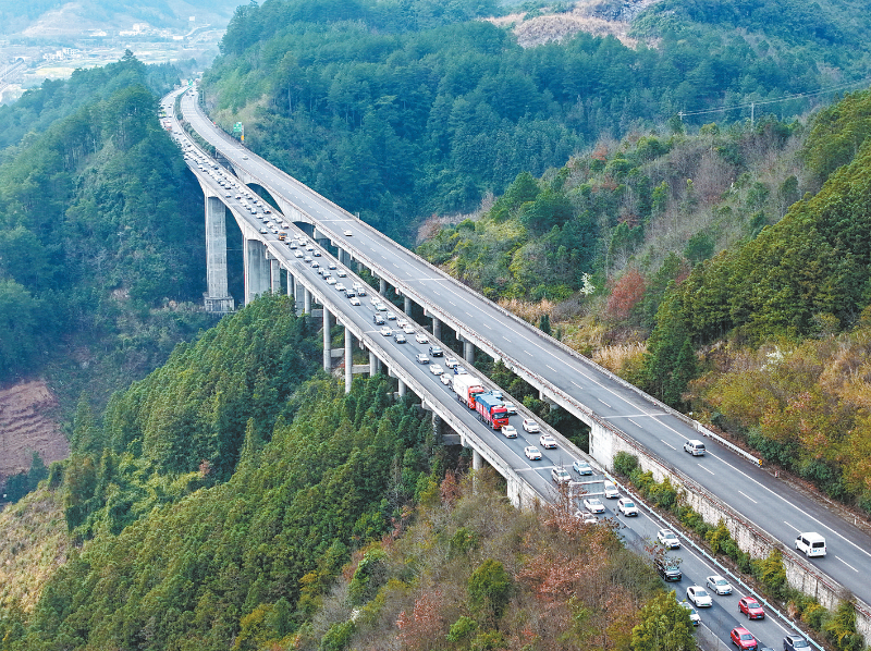 这是2月23日在厦蓉高速公路贵州省黎平县境内拍摄的返程车流(无人机照片)。春节假期进入尾声,假期返程也进入高峰期。数据显示,2月22日全社会跨区域人员流动量超3.8亿人次,23日正月初七,全社会跨区域人员流动量超3.6亿人次,比2025年同期(2月4日,农历正月初七)增长11.9%。 新华社发 龙建睿 摄