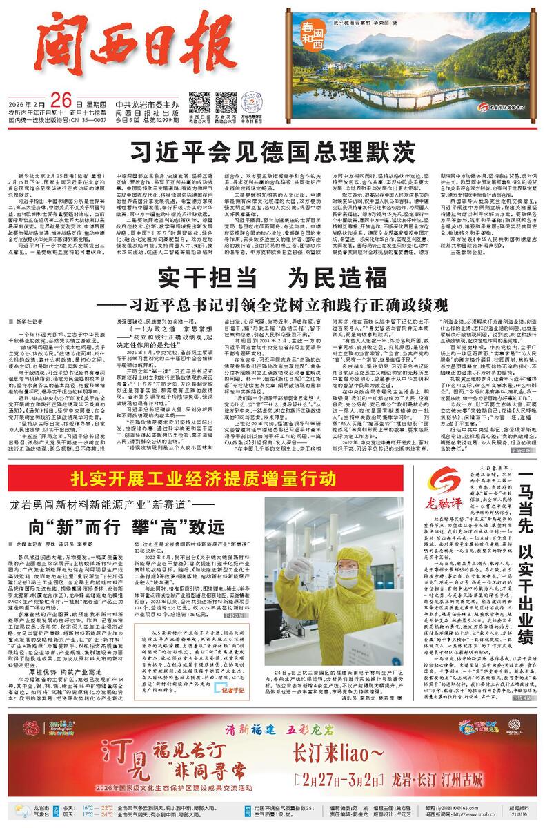 从5条新材料产业链齐头并进,到三大新能源主导产业蓬勃崛起,闽西大地正以深耕资源的战略清醒,上演着从“资源依赖”向“创新驱动”的精彩蝶变。要让“新”出高质量成为常态,就必须以重点企业为脊梁、以重大项目为抓手,在精准施策中强筋健骨,在协同创新中突破瓶颈,在延链强链中织密产业生态,在巩固优势的基础上提质、扩面、增效,让“龙岩造”新材料新能源产品走向更广阔的舞台。