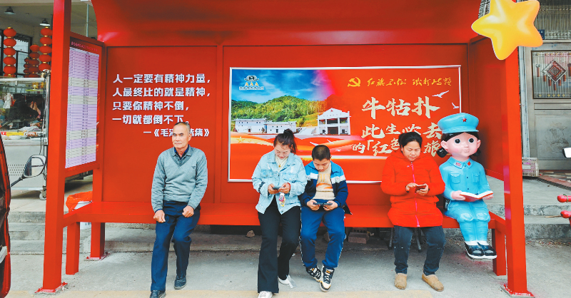 “以前等车只能蹲在路边,现在有了长椅可以坐着等,可太好了!不怕晒也不怕淋雨,还能看看红色故事,心里又暖和又踏实。”不少村民和返乡人员对此纷纷点赞。