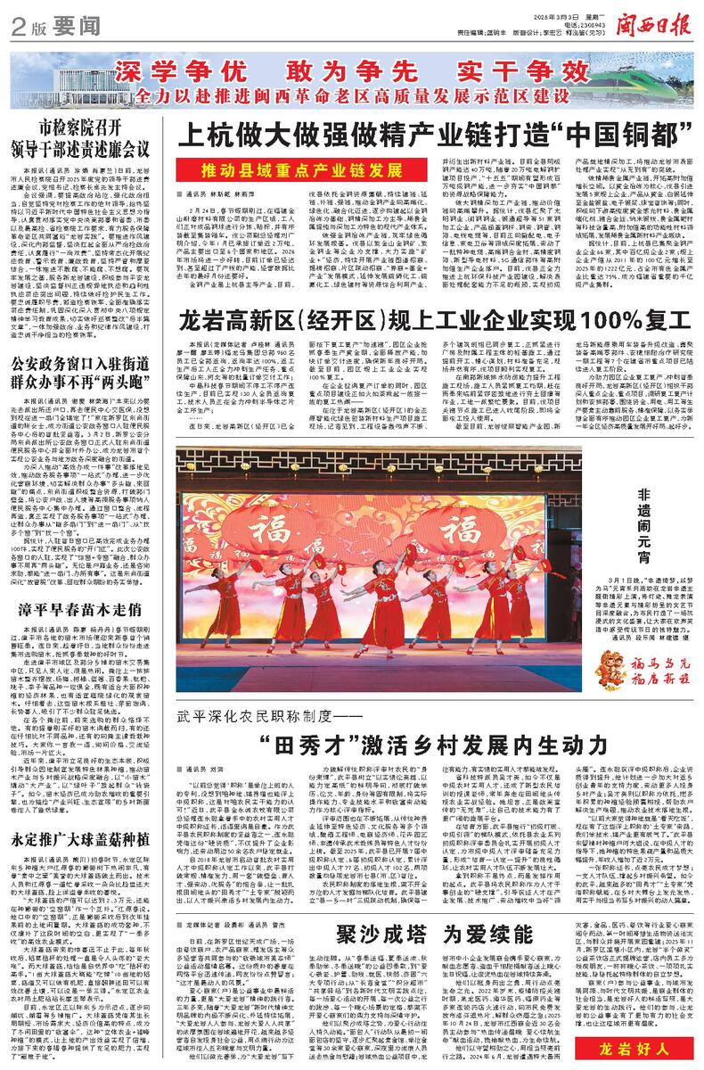 做大铜精深加工产业链,推动价值链向高端攀升。据统计,该县汇聚了太阳铜业、闽铜铜业、银通超导等51家铜加工企业,产品涵盖铜杆、铜带、铜管、铜箔、电线电缆等,目前正向输配电、电子信息、家电卫浴等领域深度拓展,带动了一批特种电缆、高端铜合金材、高精度铜箔、新型导电材料、5G通信部件等高附加值生产企业落户。目前,该县正全力推进上杭环保科技产业园建设,解决表面处理配套能力不足的瓶颈,实现初级产品就地精深加工,将推动龙岩市表面处理产业实现“从无到有”的突破。
